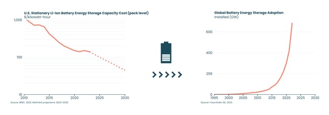 - The cost and production improvements in solar PV, onshore wind power and lithium-ion battery technologies have been predictable and consistent for over two decades and are well on their way to peak efficiency. The combination of incremental improvements in the underlying technology, together with scaling of manufacturing creates a strong correlation between unit cost and production volume, as is common across technologies of of many kinds. This can be seen in the graph below, from p26 of our Rethinking Climate Change report. Find out more about the cost improvements on lithium-ion batteries on on p15 of our Rethinking Energy report.